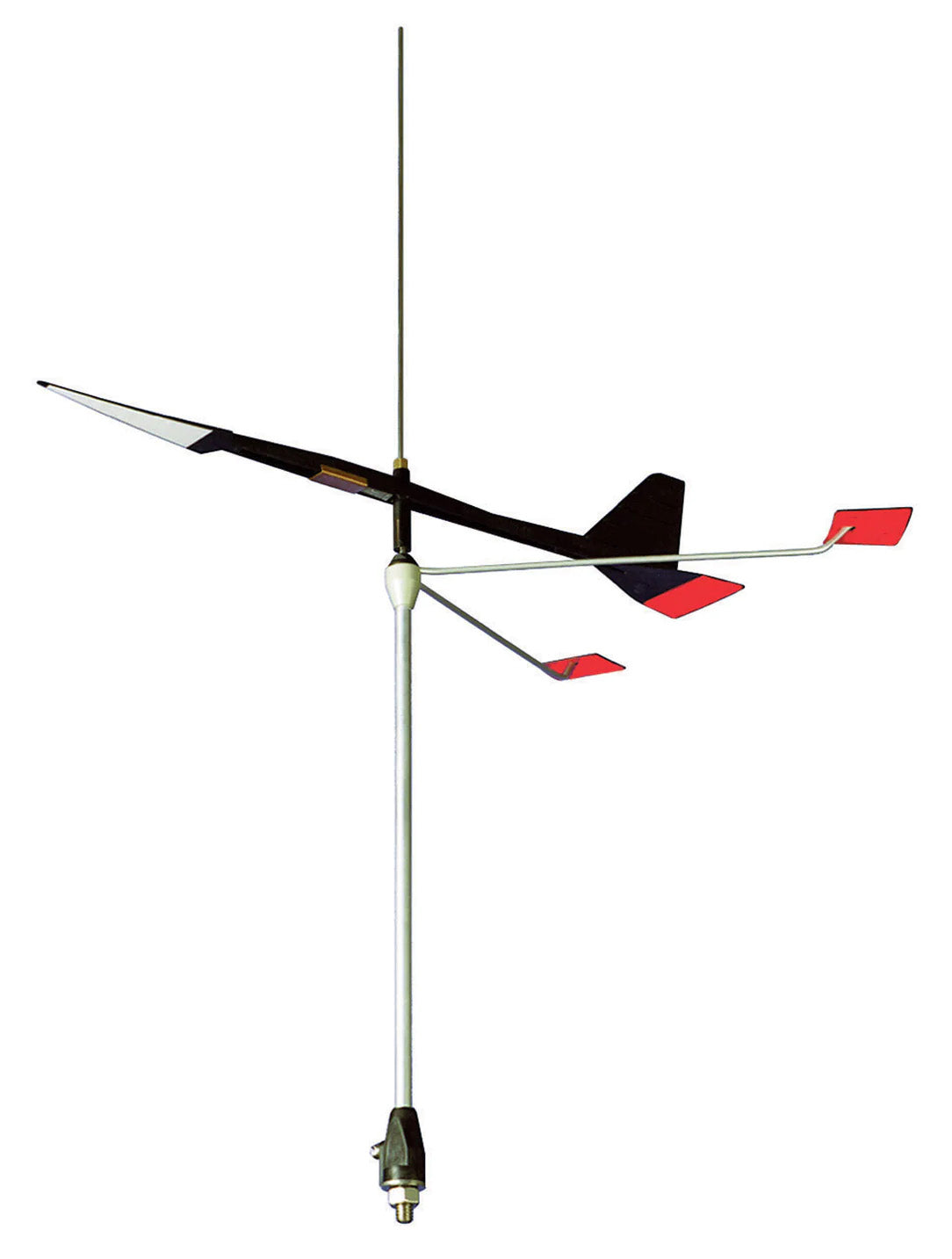 - WindTrak 15 has a 15″ (38 cm) vane. Includes through-bolt or drill and tap mounting socket; 5/16″ -18 stainless stud, washers and nut. Stands 12.75″ (32 cm) tall and weighs just 3.6 ounces (101 g).